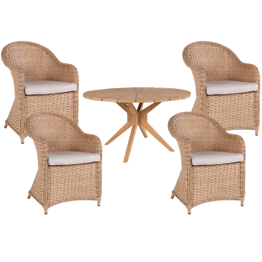 Bork/Furreby havemøbelsæt med bord og 4 stole teak/natur