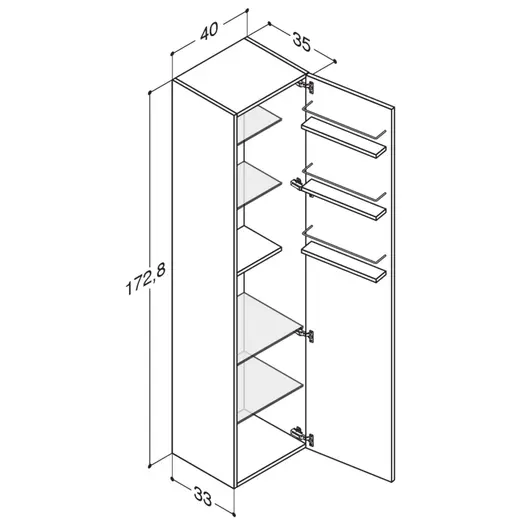 Scanbad Multo+ højskab med 1 låge, 175x40x35 cm hvid højglans venstrehængt